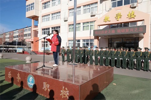 冬晨肃穆,寒风凛冽。在第十二个南京大屠杀死难者国家公祭日即将到来之际,乐亭职校全体师生于12月8日上午,庄严集结于国旗台前,举行以“铭记历史之殇 砥砺复兴之志”为主题的升旗仪式。这是一次对历史的深沉回望,也是一次对未来的庄严宣誓,旨在引导全体师生缅怀罹难同胞,汲取历史教训,将爱国之志化为强国之行。