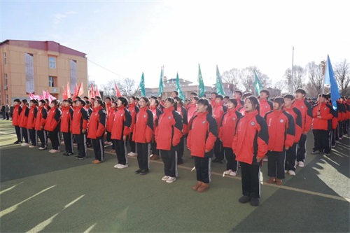 仪式在庄重的氛围中开始。本次升旗仪式由经济贸易系代表队领唱国歌。伴随着激昂雄壮的《义勇军进行曲》,护旗手将鲜艳的五星红旗冉冉升起。在经济贸易系代表队的引领下,全体师生肃立凝视,高唱国歌。嘹亮的歌声穿透凛冽寒风,承载着对祖国的深沉热爱与对历史的无限追思,更凝聚起勿忘国耻、奋发图强的共同意志。