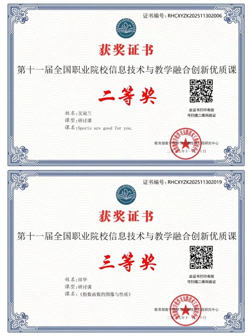 这份荣誉,既是两位老师深耕教学、勇于创新的智慧结晶,也是我校持续深化教育数字化改革、积极推进教学创新的具体体现。未来,学校将继续推动信息技术与职业教育教学的深度融合,强化数字化育人实效,为培养更多高素质技术技能人才提供坚实支撑。