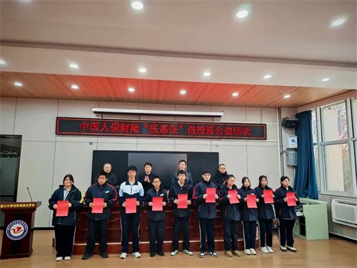 冬日暖阳传递温情,爱心捐赠情暖校园。为深入贯彻“健康中国”战略,完善学生医疗保障体系,12月15日上午,中国人保财险遵化分公司“医惠保”进校园捐赠活动在遵化市职业教育联合学校举行。遵化职校常务副校长刘大鹏、副校长杨金宝,中国人保财险经理荣小鹏、副经理张桐,班主任代表及20位受赠学生和家长齐聚一堂,共赴爱心之约,共绘健康成长蓝图。