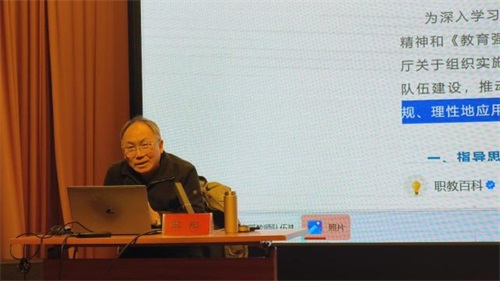 倪彤教授是首批“十四五”职业教育国家规划教材主编,享受省政府特殊津贴,获安徽省特级教师、省级职教教学成果一等奖等荣誉。她以《AIGC+金课程+金教材+教学比赛》为题,指导教师科学运用生成式人工智能,对标国赛标准实操演示获奖教案打磨技巧,同时解读“金课”“金教材”与精品课程建设标准,为教师专业发展指明方向。