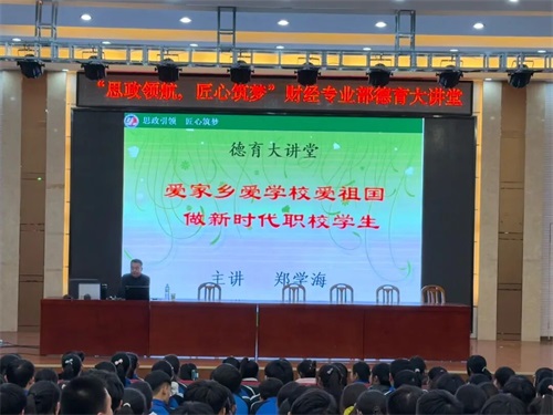 为持续推进“思政引领,匠心筑梦”德育品牌建设,16日,我校财经专业部德育大讲堂开展《爱家乡爱学校爱祖国 做新时代中职学生》主题讲座,引导全体学生坚定理想信念,践行使命担当。就业办郑学海主任主讲,全体财经专业部25级学生参会。