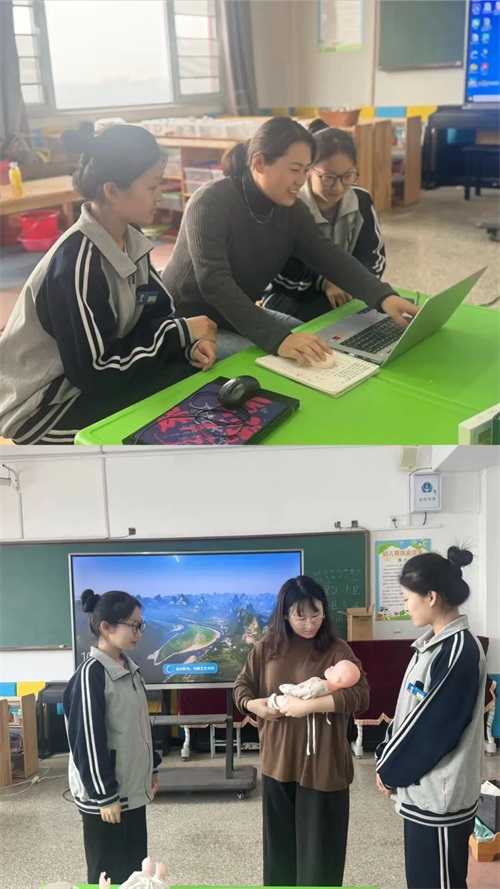 赛事设置“早托幼岗位认知素养测评”“托幼机构环境创设技能实操”“婴幼儿照护实操”“婴幼儿发展支持展示”四大核心模块,旨在提升学生对早托幼岗位的深入理解,强化其对保教技能的掌握程度,培养学生的实践能力和创新精神。初次接触此项比赛,面对陌生的比赛内容,白金环、张琳两位老师认真研究赛项规程,制定了详细的训练计划,针对早托幼岗位的核心技能进行专项指导。两位同学在老师的指导下,更是全身心投入,认真对待每一个训练细节,在备赛过程中不断突破自我。