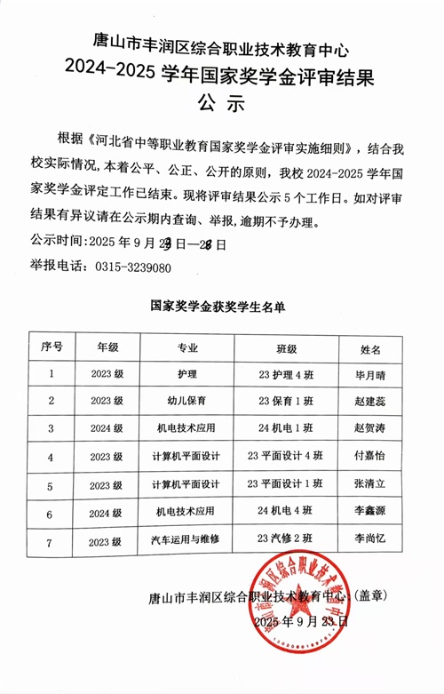为深入贯彻落实国家奖学金政策,充分发挥奖学金激励导向作用,历经个人申报、班级推荐、专业部审核、学校评审、公示等多轮严格遴选,我校毕月晴、赵建蕊、赵贺涛、付嘉怡、张清立、李鑫源、李尚忆等七名同学,凭借优异的学业成绩、突出的综合素质和良好的道德品质,在众多竞争者中脱颖而出,成功斩获国家奖学金,每人喜获6000元奖励。