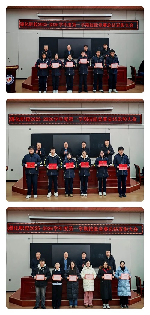 霜天澄澈,松柏傲寒。在这瑞雪盈枝、砥砺奋进的岁末时节,遵化市职业教育联合学校组织召开了2025—2026学年度第一学期技能竞赛总结表彰大会,旨在表彰先进,总结经验,激发师生钻研技能、奋勇争先的热情,推动学校职业教育高质量发展。