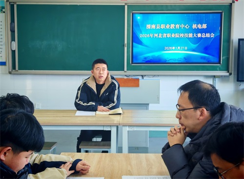 1月27日,滦南职教中心机电部召开2026年河北省职业院校技能大赛总结会。副部长桑福康主持会议,各赛项指导教师和参赛学生参会。