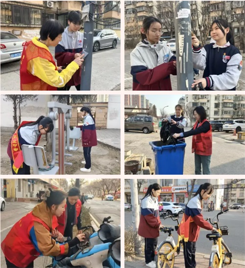 师生志愿者队伍走进新河嘉园社区,铲除小广告,擦拭社区公共运动器材,摆放街边共享车辆,以实际行动改善社区环境,助力社区群众的居住环境提质升级。
