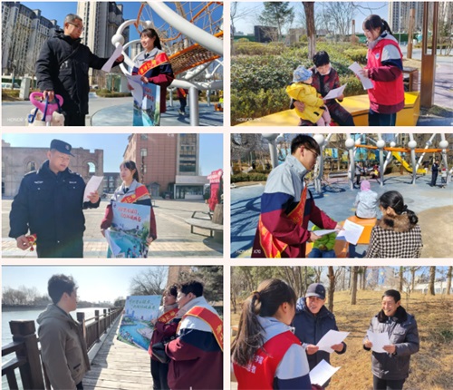 团员学生在党员教师带领下,围绕环城水系沿线,向过往市民发放环城水系保护宣传册,耐心讲解垃圾分类、低碳生活、环境保护等相关知识,倡导绿色低碳的生活方式,针对乱扔垃圾、随意戏水等不文明行为进行耐心劝导,引导居民树立环保意识,呼吁市民共同守护环城水系的清澈与美丽,以点滴行动助力城市生态环境持续向好。