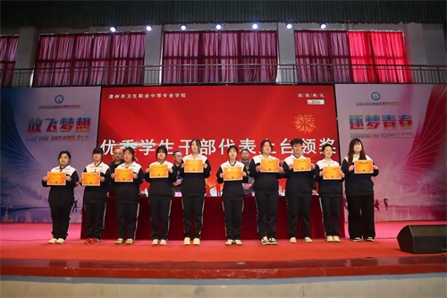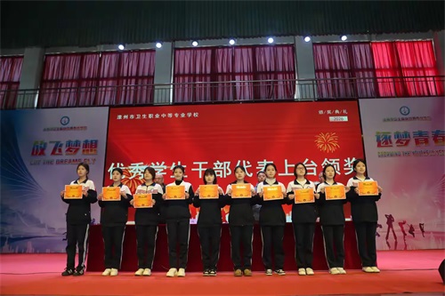 优秀学生干部代表上台领奖,她们服务同学、担当作为,是班级与学校的坚实纽带;
