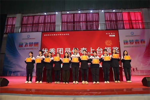优秀团员代表上台领奖,她们信念坚定、积极向上,彰显着共青团员的先锋本色;