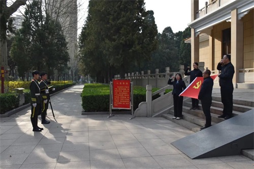 第二党支部书记孙丹丹领誓,全体党员面向党旗重温入党誓词。大家在缅怀中坚定信仰,在宣誓中牢记使命,进一步强化党性修养、砥砺初心本色,以更加昂扬的精神状态践行对党的庄严承诺。