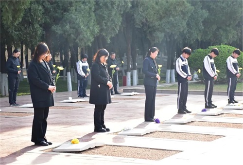 活动当天,松柏苍翠,庄严肃穆,师生们怀着无比崇敬与肃穆的心情,列队步入陵园。在庄严的冀东烈士纪念馆前,全体人员整齐列队,神情庄重,向烈士敬献花篮。