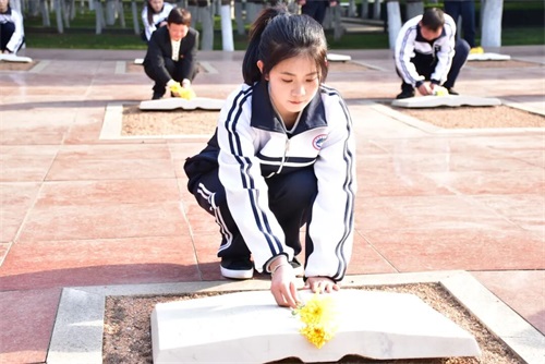 党员教师代表、学生代表依次向烈士书形碑敬献鲜花。大家轻轻擦拭碑身尘土,庄重摆上菊花,以最朴素的方式缅怀先烈,铭记他们的牺牲与奉献,珍惜当下来之不易的幸福生活。