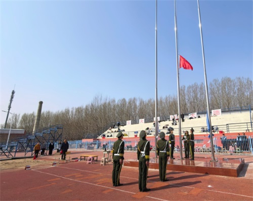 全体师生肃立注目,爱国情怀与运动激情交织升腾。