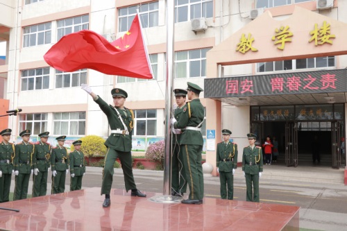 伴随着雄壮的《义勇军进行曲》,国旗护卫队步伐铿锵,护送五星红旗入场。全体师生肃立注目,高唱国歌。鲜艳的国旗冉冉升起,迎风飘扬。这一刻,庄严与敬畏在心中升腾——国家安全,是国之基石,更是每一位公民的福祉所系。