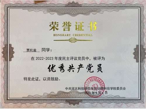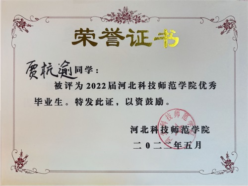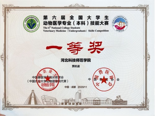 凭借中职阶段的深厚积淀,贾杭逾顺利被河北科技师范学院动物医学专业录取。本科期间,他潜心向学、精益求精,在专业领域深耕不辍,在学生工作中担当有为。