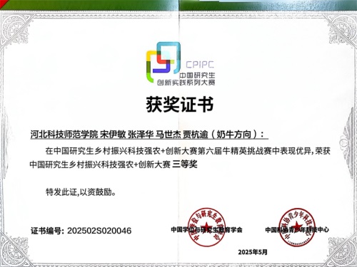 星光不问赶路人,时光不负实干者。凭借多年深耕与累累硕果,贾杭逾即将进入河北农业大学攻读博士学位,继续在动物科技与兽医领域潜心钻研,以专业所学助力乡村振兴、服务三农发展,将青春热血融入国家畜牧兽医事业。