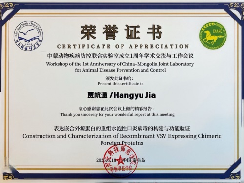 本科毕业后,贾杭逾继续在兽医专业深造攻读硕士。作为中共党员,他始终以高标准律己,以真心服务集体,在科研探索中严谨求实,在实践历练中突破自我。