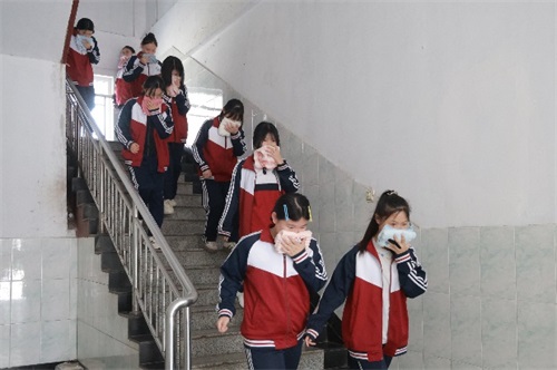 演练现场,火警警报响起后,安保人员与宿管老师迅速到岗,分层分宿舍引导学生疏散。全体住宿生严格按照规范动作,用湿毛巾捂住口鼻、弯腰低姿,沿预定路线快速有序撤离至操场安全区域。全程无拥挤、无慌乱,仅用时6分钟便完成全员疏散与人数清点,展现出良好的应急素养与纪律意识。