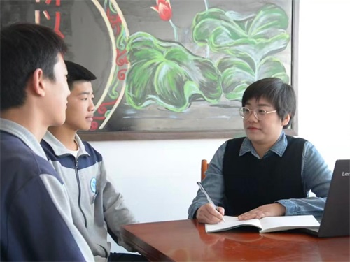 刘雅静与学生谈心