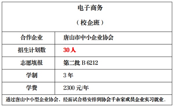 电子商务校企班培养电商运营、直播带货、新媒体营销等实战型人才。课程由协会企业参与共建,融入网店运维、直播实战、短视频营销等企业真实项目。配备企业导师与双师型教师团队,采用"项目+竞赛"教学模式,依托省级获奖经验,配置智能直播间与数据分析系统。至唐山中小微企业从事电商运营、直播策划等岗位,同步衔接高职院校升学通道,实现"入学即入行、毕业即就业"的产教融合培养。