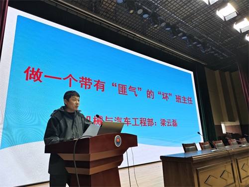 机械与汽车工程部的梁云磊老师则带来了题为《做一个带有“匪气”的“坏”班主任》的独特分享。他幽默地自称所带班级“既不先进也不优秀”,却以清晰的逻辑阐述了其高效的管理哲学。他强调要将校规校纪“落地转化”,让学生在校园内就建立起“行为-后果”的对应认知,为适应未来社会奠定基础。他推行“政令统一”原则,树立班主任权威,同时巧妙发挥班干部的“桥梁”作用,降低管理阻力。他主张有策略地塑造“教育威慑”,并通过“冷处理”或“将处理权交还集体”等方式,实现“以集体力量管集体”的高效管理,展现了其粗犷风格下蕴含的深刻教育智慧。