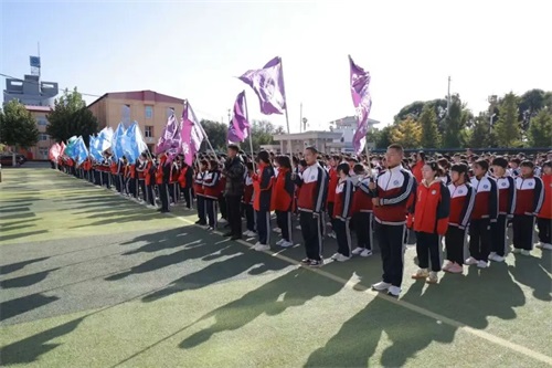 激昂的《义勇军进行曲》响起,国旗护卫队迈着铿锵有力的步伐,护卫着五星红旗走向升旗台。全体师生行注目礼,高唱国歌。鲜艳的国旗在晨曦中冉冉升起,迎风飘扬。这一刻,爱国情怀在每个人心中激荡,责任与使命在目光中凝聚。