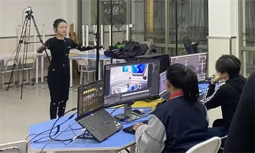会后,唐山市十一中领导到我校IT产教中心四层智慧教室,观摩了数字媒体专业学生制作的数字人创意设计与应用作品演示。