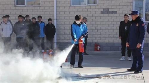 冬季消防演练中,联合县消防大队开展灭火器实操培训,覆盖食堂工作人员、学生处全体人员及各系部代表,实现"三会"(会报警、会逃生、会自救)技能全员普及。