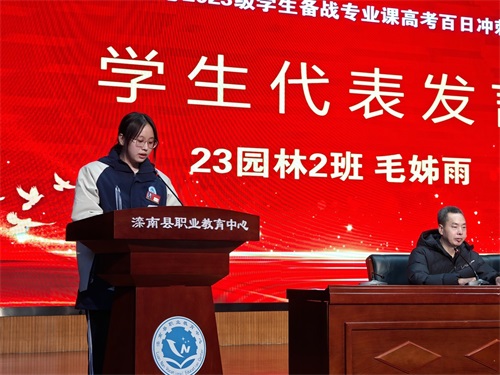 23园林2班的毛姊雨分享了将专业知识与实践结合、用科学方法高效学习的心得,呼吁同学们“珍惜百日时光,以耕耘换收获”。代凤霞老师代表全体高三教师庄重承诺:“将倾囊相授、全程陪伴,做学生最坚实的后盾,与大家并肩作战。”刘博同学的家长表达了对学校和老师的衷心感谢,表示“将做好后勤保障与心理疏导,全力配合学校工作”,同时寄语同学们“自律坚韧、感恩奋进,不负青春与期盼”。