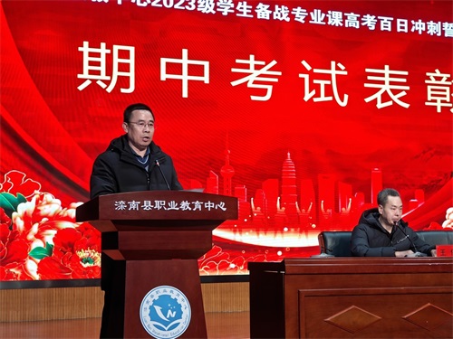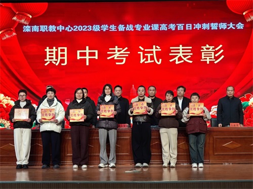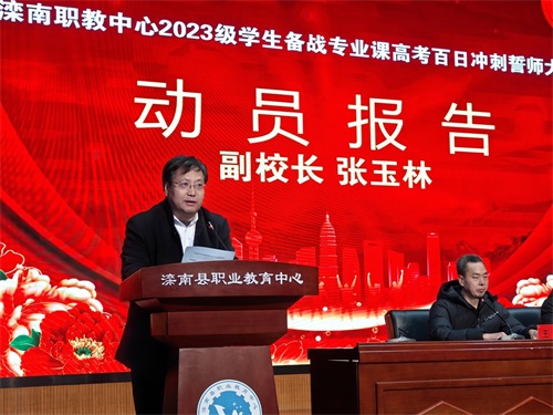 12月11日下午,滦南县职业教育中心高三年级备战专业课高考百日冲刺誓师大会在修德礼堂举行。校党委书记杨会军,校党委副书记、校长晁树山,督学杨建军,副校长张玉林、张新军,相关部门负责人,全体高三师生及家长参加了活动。