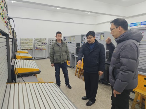 机电部部长崔安忠、副部长桑福康对实训室进行安全检查