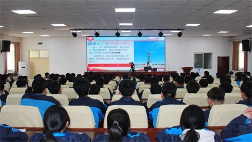 校长开宗明义:“唐山,是一座用精神铸就的城市。”他以李大钊先生“铁肩担道义”的誓言为引,带领师生重温五种精神的历史坐标——从大钊先生为民族解放奉献一切的信仰之光,到开滦工人在艰苦条件下团结攻坚的“特别能战斗”精神;从西铺村乡亲们“三条驴腿闹革命”的自力更生,到沙石峪人“万里千担一亩田”的愚公移山;再到1976年唐山人在废墟中重建家园的抗震精神……这些精神不是尘封的史册,而是新时代中职生成长成才的“活教材”。