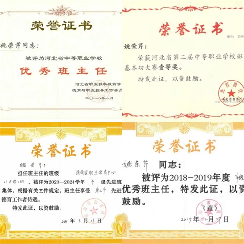 深耕班主任岗位十九年,姚荣芹老师始终尊重学生个体差异,以爱心、耐心与细心陪伴每一位学生成长,真正做到因材施教、静待花开。她先后荣获河北省中等职业学校优秀班主任、河北省第二届中等职业学校班主任基本功大赛一等奖,获评市级先进班集体4次、县级先进班集体3次;所在班级荣获学校红歌合唱比赛中一等奖、精神文明班集体、特殊贡献班集体等多项荣誉。十九年初心不改,姚荣芹老师以累累硕果诠释育人担当,用实际行动践行立德树人的教育使命。