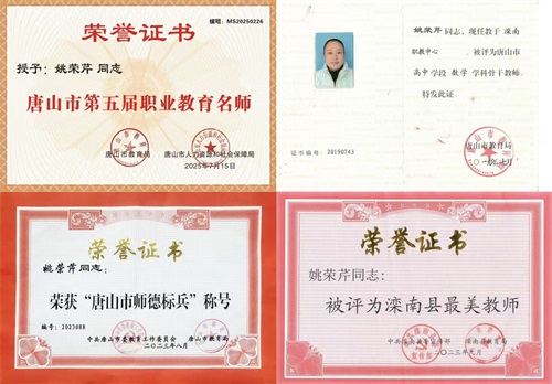 二十载风雨兼程,二十载初心如磐。从三尺讲台到教研前沿,从班级管理到示范引领,姚荣芹老师始终以党员标准严格要求自己,以匠心守初心,以实干担使命。她先后荣获唐山市第五届职业教育名师、唐山市师德标兵、唐山市骨干教师、唐山市先进德育工作者、滦南县优秀教师、滦南县级骨干教师、滦南县最美教师等多项荣誉称号。