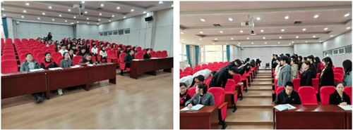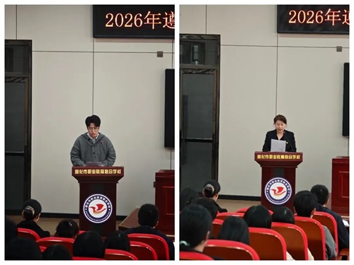 实习生代表郝语哲同学发言。他代表全体实习生感谢学校提供宝贵的实践平台,并表示将珍惜实习机会,严格遵守学校规章制度,虚心学习、认真钻研、多听多练、踏实实践,努力将理论知识转化为教学能力,不负学校期望、不负师者初心。