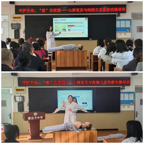 4月20日,学校急救教育培训工作团队在医学部李俊杰老师带领下,走进丰润区杨官林镇曹庄子中学,针对该校师生开展应急救护公益培训,为基层学校送上了一堂生动实用的生命安全教育课。授课教师紧扣校园安全工作需求,以心肺复苏和海姆立克急救法为核心,结合真实案例,深入浅出地让受训师生明了“黄金救援时间”的重要性,对按压深度、频率及施救站位等技术要领进行了详细拆解解析。