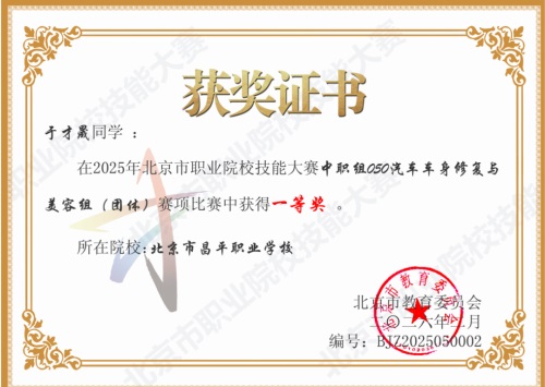 2025年12月,荣获北京市职业院校技能大赛“车身修复与美容”赛项 一等奖