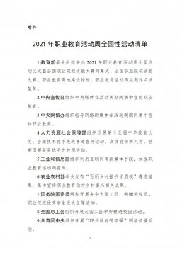教育部等十部门关于做好2021年职业教育活动周相关工作的通知2021-04-19
