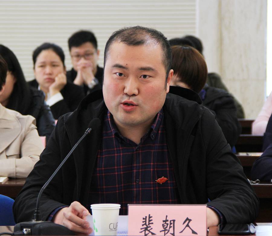 今天,我作为机关青年干部的一名代表参加座谈发言,感到非常荣幸。首先简要介绍一下自己。我叫裴朝久,是2008届省委选调生,2008年8月至2014年10月,先后在衡水的深州市委组织部、市信访局工作;2014年10到省教育厅,目前在基础教育处,主要做义务教育、特殊教育和处里的文字综合等方面的工作。
