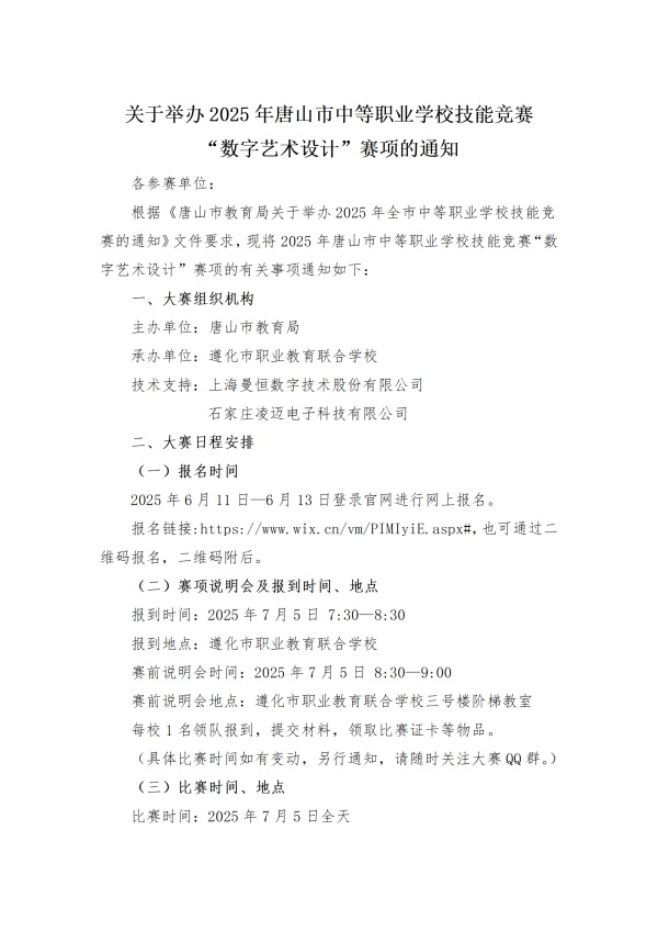 关于举办2025年唐山市中等职业学校技能竞赛 “数字艺术设计”赛项的通知