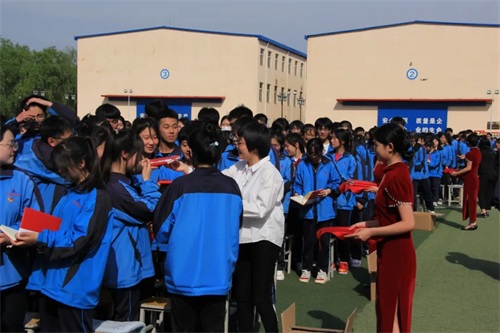 副校长王新刚、李志富,各部系主任、班主任为同学们颁发成人礼物。