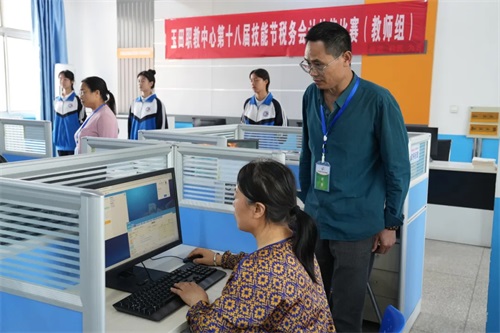 为迎接第十八届技能节,献礼职业教育周,5月16日下午,财经专业部组织专业课教师开展技能比武活动。玉田职教中心财经专业部全体会计教师、计算机教师参加比赛,为确保比赛的公平、公正和专业性,特邀请副校长娄新、教务处主任杨忠担任主裁判,共同见证教师们的精彩表现。