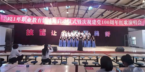 为贯彻落实全国职业教育大会精神,大力弘扬劳动光荣、技能宝贵、创造伟大的时代风尚,进一步营造全社会关心支持职业教育的良好氛围,按照教育部十部门及市教育局安排,2021年5月21日上午,开平职校2021年职业教育活动周启动仪式暨建党100周年红歌演唱会在大饭厅隆重举行。本次活动周主题:技能:让生活更美好。