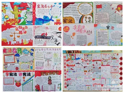 一张张精美的手抄报,创意独特、设计新颖,便于学生直观地了解宪法内容,清楚地认知宪法的修改和制定程序。