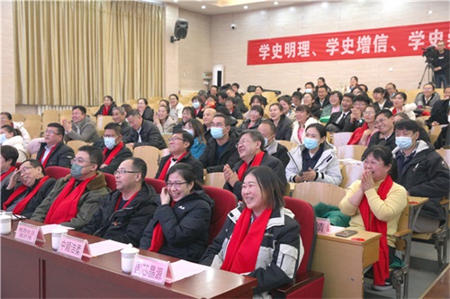 侯馨部长首先致欢迎辞,她对我校一年来党史学习教育给予了充分的肯定,并希望全体师生把学习成果转化为干事创业的生动实践,在真抓实干中诠释初心,促进家乡经济发展。