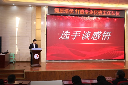 会上,李跟升对本次班主任大赛开展情况进行了汇报;杨丽霞、田雪柏、王雨娜三位教师分别对班级建设方案、班级活动策划、教育故事演讲进行了展示;刘博、孙志会两位教师分享了参加班主任大赛的感悟;学校领导分别为获奖选手颁发证书。最后,张铁庄做总结讲话,指出比赛既是挑战,也是成长,希望全体班主任再接再厉、精益求精、爱岗敬业,增强责任意识和竞争意识,积极投身到专业化班主任队伍建设中,为学校提质培优工程贡献力量。