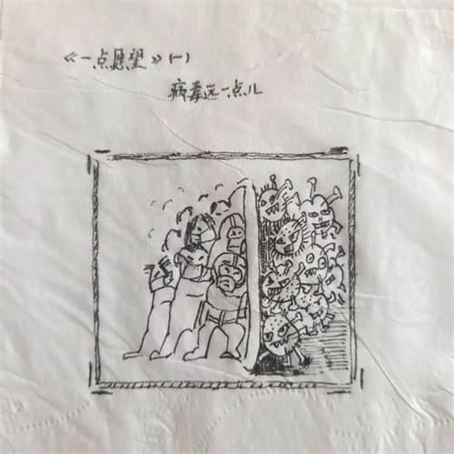 画笔和画纸用完了,从学校提供的物资箱里翻出一卷卫生纸,老师说过,在画家的眼里,世间万物皆可成为绘画材料,或许,这卷平凡的卫生纸将会成为一件意义非凡的“艺术品”。