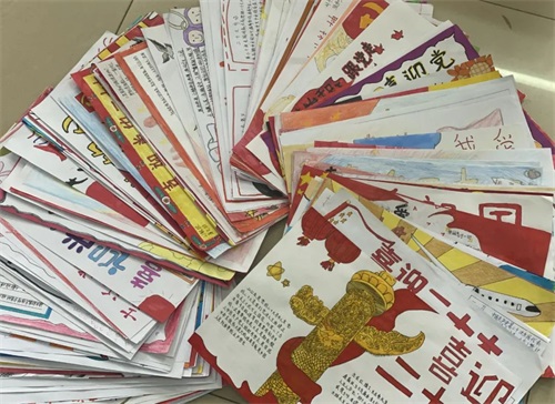 为弘扬中华民族传统文化,不断丰富学生校园文化生活,引导学生树立正确的爱党、爱国、爱校新时代教育理念,以昂扬的精神风貌献礼党的二十大胜利召开。在中华人民共和国成立73周年之际,我校举办“喜迎党的二十大.强国有我新征程”手抄报活动。35个班级参与活动,共收到作品105篇.对祖国美好的祝福,对祖国的热爱,都尽显在一笔、一字、一句中。