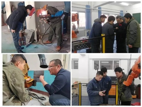 备赛期间,机械制造系焊工专业师生发扬“四千”精神,踔厉奋发,勇毅前行。焊工的训练需要孩子们的吃苦精神,尤其仰脸焊项目,全过程都需要仰头操作,虽大汗淋漓,甚至头晕目眩,但仍坚持每天至少练习三个小时。机器人焊接是今年的新赛项,学校专门添置新实训设备,并安排教师进行专业培训。多少个夜晚,火花仍在飞溅;多少个节假日,师生欢笑相伴;多少次研讨,期待柳暗花明;多少次模拟实训,汗水泪水交织的画面......
